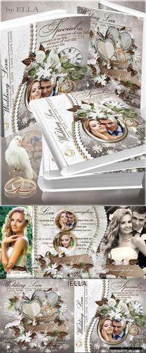 Шаблон свадебной фото книги с нежным оформлением для Ваших памятных фотографий.